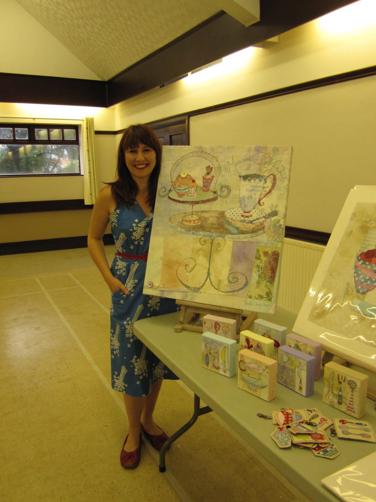 For our june meeting we were treated to a take and slideshow by the talented textile artist Priscilla Jones. He slide show showed us her journey from an embroidery student at Manchester Metropolitan University to the successful textile artist she is today. Priscilla showed us how strong drawing skills underpins her current practise, often drawing everyday objects and items of clothing.